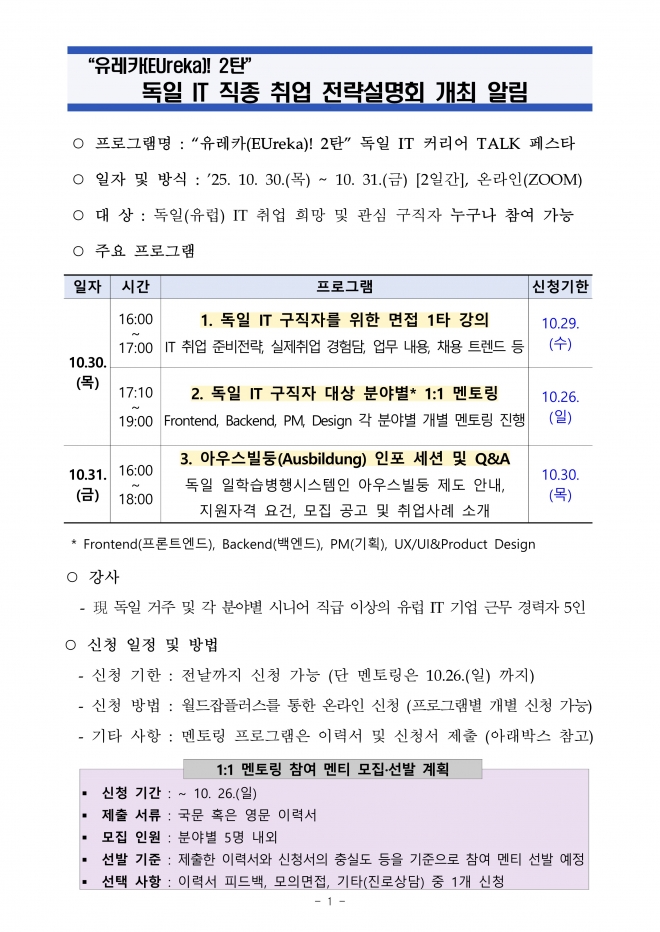 2025 독일 IT 직종 취업 전략 설명회 안내
