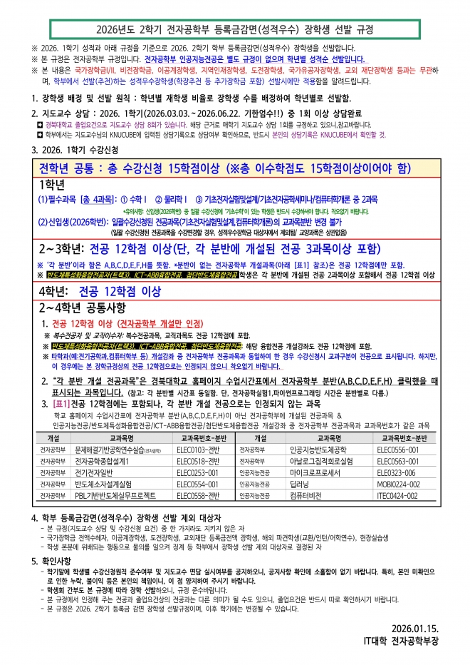 | 제 목 | ★필독★학부성적우수장학생 선발규정 안내(2026.1학기 수강신청기준) | ||||